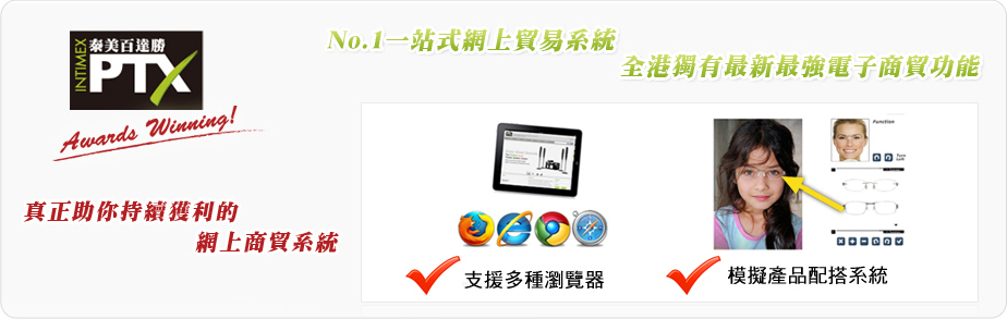 PTX百達勝網上貿易系統揉合強勁的易發達(Emailer)及完善的會員制功能, 並融入客戶關係管理概念 (customer relationship management), 商家輕而易舉就能掌握客戶所需所想。在線商務文件及數據一應俱全,讓商家與客戶在方便但機密的環境下從容有效地進行網上商貿。因此多年來一直為製造業、出入口貿易及批發商所喜愛選用,亦為現時全港最多廠商採用的no.1網上貿易系統 (e-Commerce System)! 加上獲獎最多的周全貼心顧客支援服務,真正幫助商家有效地建立品牌(brand building)及持續獲利!